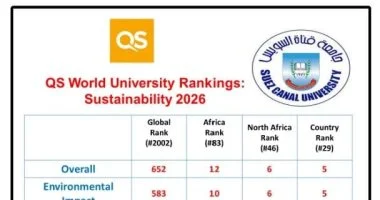 حققت جامعة قناة السويس إنجازاً استثنائياً في تصنيف كيو إس للاستدامة لعام 2026، مما يؤكد مكانتها الرائدة في التعليم العالي عالميًا. يعكس هذا التقدم قيادة الجامعة في التعامل مع التحديات البيئية والاجتماعية ومعايير الحوكمة، ويبرز دورها في تعزيز الاستدامة كجزء من رسالتها التعليمية والبحثية.