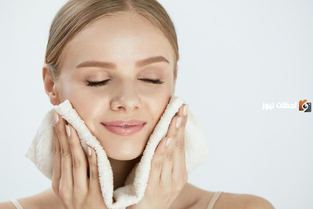 - من خلال استخدام قطعة قطن صغيرة يتم توزيع الماسك على الوجه.