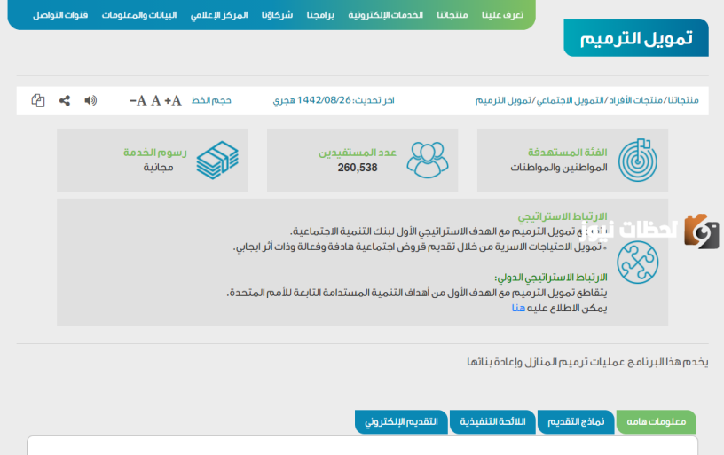 - تظهر شاشة تعريفية تحتوي على معلومات كافية عن قرض الترميم وتتمثل في الشروط وكذلك المميزات.
