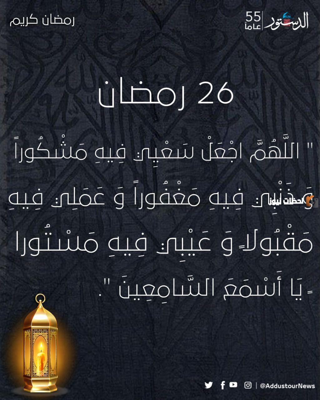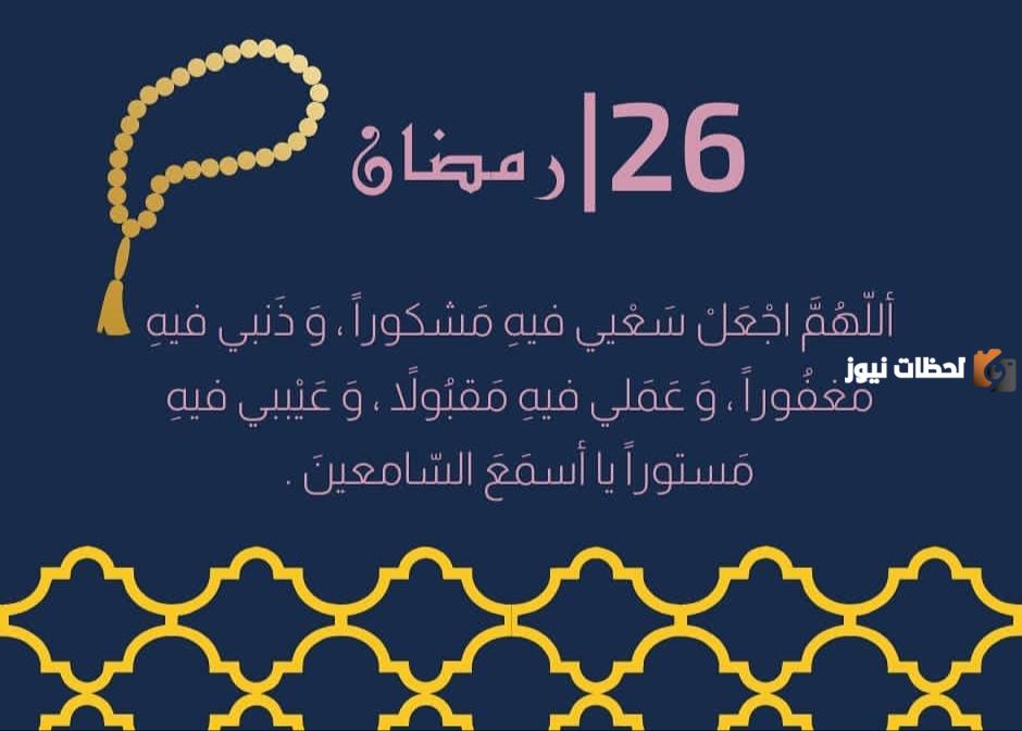 اليوم السادس والعشرين من رمضان هو يوم فضيل من الأيام العشر الأواخر وهو اليوم الذي يسبق ليلة القدر وفيه يستعد المسلم أتم استعداد لاستقبال ليلة القدر المباركة، ويسبق هذا الاستعداد الروحي التقرب إلى الله أكثر واللهج بالذكر والاستغفار وعلى أولويتها الدعاء ومن بين أهم هذه الأدعية الدعاء التالي: