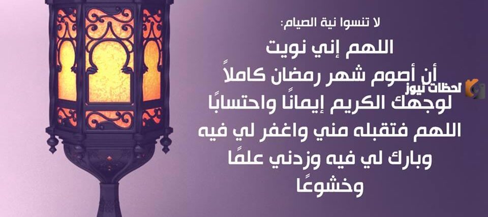 • اللهم إني نويت صيام شهر رمضان المبارك والكريم كاملًا وخالصًا لوجهك الكريم يا الله ويا أرحم الراحمين، اللهم تقبّل صيامي واستجب إلى دعائي يا الله.