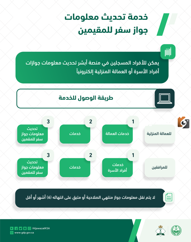 - لابد من سريان جواز السفر التابع لهذا المقيم.