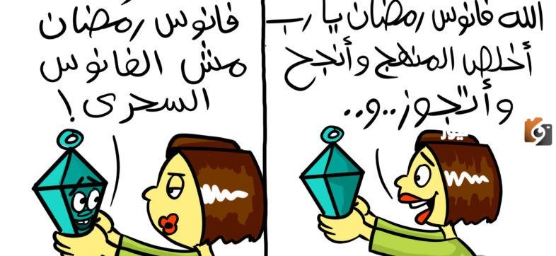 - صورة مضحة جدًا تنال إعجاب الكثير من الناس وتظهر في هذه الصورة من جهة اليمين فتاة تمسك في يدها بفانوس رمضان وتتمنى بعض الأمنيات، وفي يسار الصورة يقوم الفانوس بالرد عليها أنه فانوس رمضان وليس فانوس سحري لتحقيق الأمنيات.