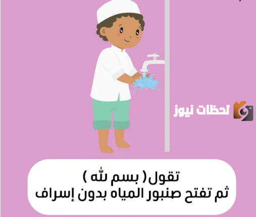 - يجب في البداية قول بسم الله في سرك عند فتح صنبور الماء.