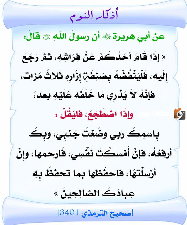 ماذا كان يقول نبي الله عليه أفضل الصلاة والسلام قبل النوم