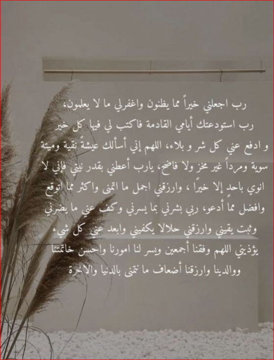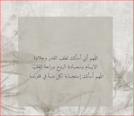 • اللهم ارضنا بقضائك واجعل عملنا في مرضاتك لا إله إلا أنت.
