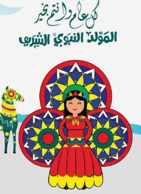 تعبر الصورة السابقة عن السعادة والاحتفال بالمولد النبوي الشريف والمليئة بالألوان السعيدة والجميلة الموجودة بها.