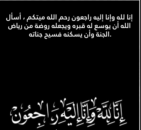 - نسأل الله أن ينزل عليكم الصبر، والسلوان وينعم على فقيدكم بالرحمة والمغفرة، إنا لله وإنا إليه راجعون.