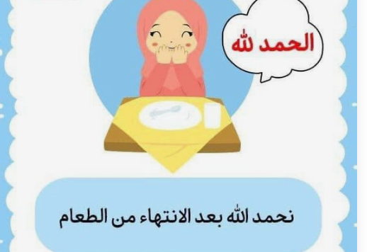 - البسملة والحمدلة: فهي أولى الآداب وأهمها، حيث يجب أن يتعلم الطفل قول “بسم الله” قبل الطعام، وفي حال نسى وشرع في تناول الطعام يقول “بسم الله أوله وآخره”، كما لابد أن يقول بعد تناول الطعام “الحمد لله” وذلك من باب شكر الله على أن رزقه هذا الطعام.