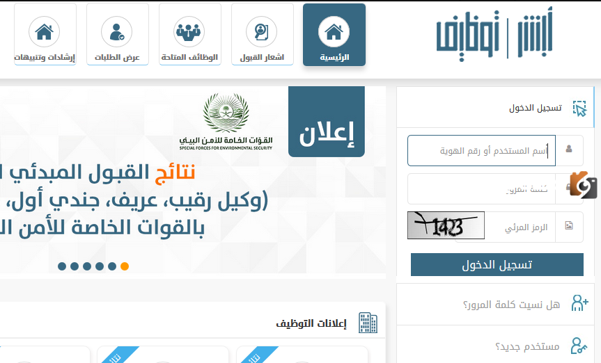 - يتم الدخول إلى الرابط الخاص بمنصة التوظيف أبشر الإلكترونية.