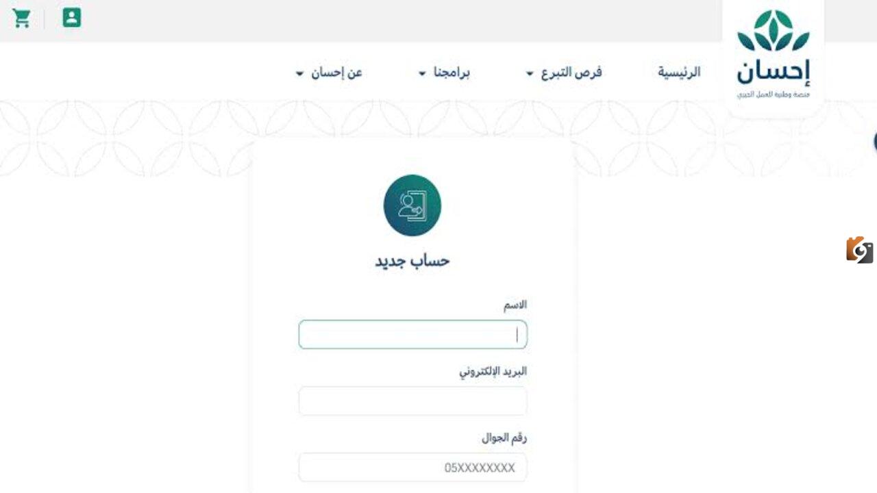 - زيارة منصة إحسان والضغط على خانة تسجيل الدخول، ثم فتح حساب في المنصة.