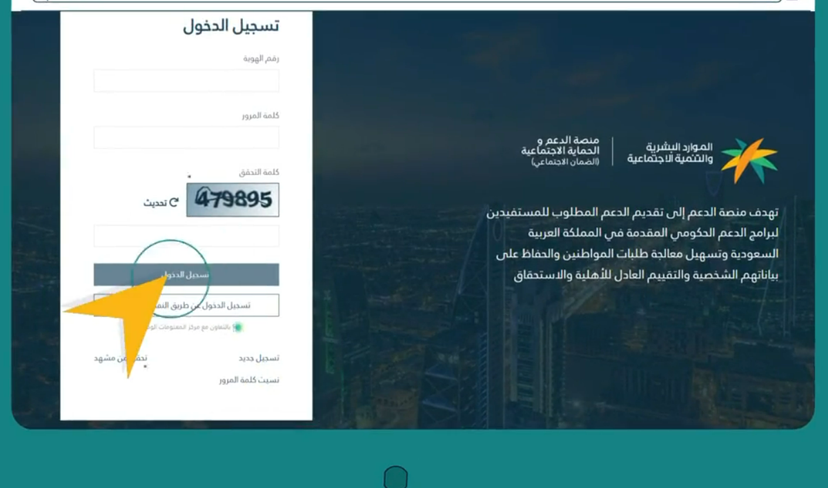 - يقوم المستفيد بالدخول أولًا إلى المنصة الإلكترونية التابعة للضمان الإجتماعي المطور.