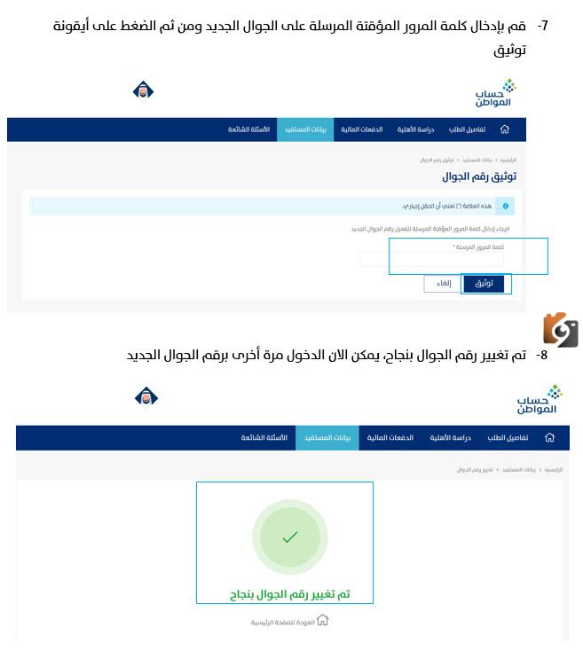 - لابد من تغيير رقم الهاتف الذي يوجد بحساب المواطن إذا تم تغييره لسبب عارض ما.
